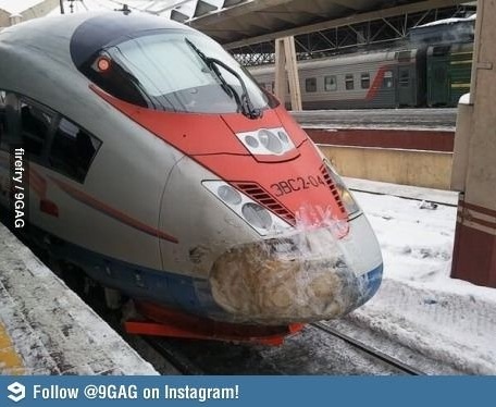 공개된 사진에는 앞부분이 심하게 손상된 고속열차가 망가진 앞 범퍼쪽을 박스 테이프로 붙여논 모습이 담겨 있다.