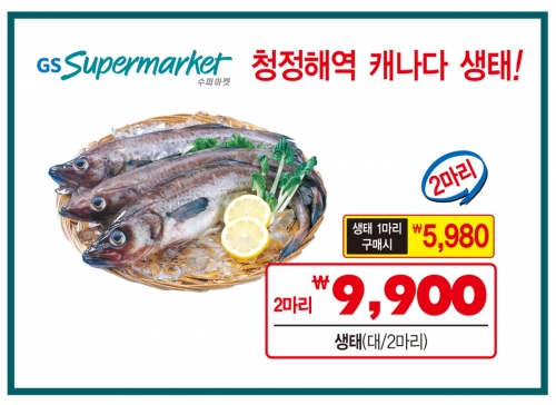 GS수퍼마켓은 이달 22일부터 25일까지 생태2마리를 9900원에 판매하는 파격 할인 행사를 진행한다고 21일 밝혔다. 2마리 구매 시 9900원이며 1마리 구매 할 경우 5980원에 판매한다.