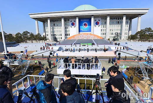 제18대 대통령 취임식을 하루 앞둔 24일 서울 여의도 국회의사당에서 취임식 최종 리허설이 열리고 있다.