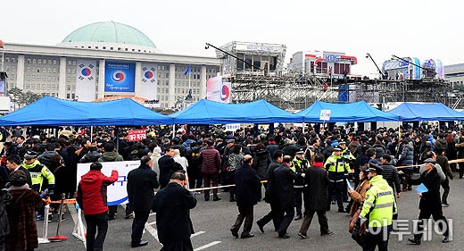 제18대 대통령 취임식이 예정된 25일 오전 서울 여의도 국회의사당 인근이 비표를 발급받기위해 몰린 시민들로 북적이고 있다.