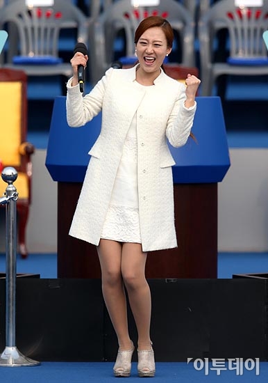 [사진공동취재단]가수 장윤정 씨가 25일 서울 영등포구 여의도동 국회의사당에서 열린 18대 대통령 취임식 식전행사에서 신명나는 무대를 펼치고 있다.