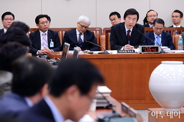 윤병세 외교부 장관 후보자가 28일 오전 국회 외교통상통일위원회에서 열린 인사청문회에 참석해 의원들의 질의에 답변하고 있다. 노진환 기자 myfixer@