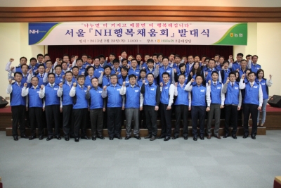 서울농협은 28일 지역사회와 함께하는 공익기관의 역할을 다하기 위해 서울지역 농협중앙회, 농협은행, 농협생명, 농협손해 직원 150여명으로 구성된 자원봉사단체 NH서울행복채움회를 출범하고 서울특별시립 고덕양로원을 찾아 봉사활동을 실시했다.