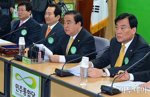 민주통합당 문희상 비대위원장이 6일 오전 서울 영등포구 민주통합당사에서 열린 ‘비상대책위원회의’에 참석해 모두발언을 하고 있다.