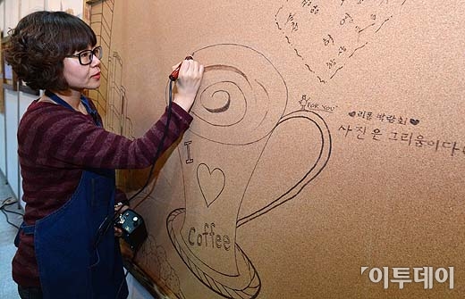 ‘2013 DIY&리폼 박람회’가 6일 오전 서울 강남구 삼성동 코엑스에서 열린 가운데 박람회를 찾은 한 관람객이 인두화를 그리고 있다. 오는 9일까지 열리는 DIY&리폼 박람회는 작게쓰고 빌려쓰고 직접 만들어 사용하는 3대 신(新)소비문화 트랜드를 반영하여 알뜰소비문화 확산을 위해 기획되었다. 방인권기자 bink7119@