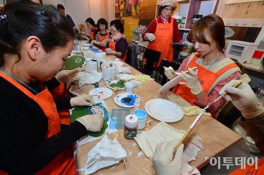 ‘2013 DIY&리폼 박람회’가 6일 오전 서울 강남구 삼성동 코엑스에서 열린 가운데 박람회를 찾은 관람객들이 DIY소품 만들기를 하고 있다. 오는 9일까지 열리는 DIY&리폼 박람회는 작게쓰고 빌려쓰고 직접 만들어 사용하는 3대 신(新)소비문화 트랜드를 반영하여 알뜰소비문화 확산을 위해 기획되었다. 방인권기자 bink7119@