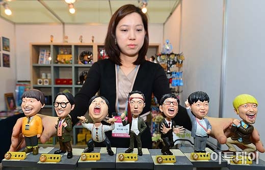 '제 23회 서울국제 판촉물, 선물 및 홈웨어전(SIPREMIUM 2013)‘이 6일 서울 강남구 삼성동 코엑스에서 열린 가운데 한 관람객이 무한도전 피규어를 살펴보고 있다. 오는 9일까지 열리는 이번 행사는 총 500개사의 우리나라 대표 중소기업들이 참여해 판촉물, 선물, 홈데코용품, 디자인상품, 주방용품 등 각종 판촉물 및 생활용품이 전시된다. 방인권기자 bink7119@