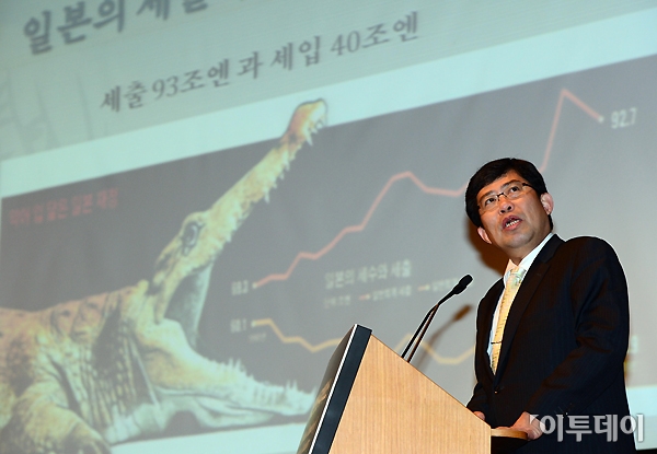 윤창현 한국금융연구원장이 8일 오전 남대문로 대한상공회의소에서 열린 조찬간담회에 참석해 ‘최근 금융시장 동향과 한국경제’를 주제로 강연하고 있다. 노진환 기자 myfixer@
