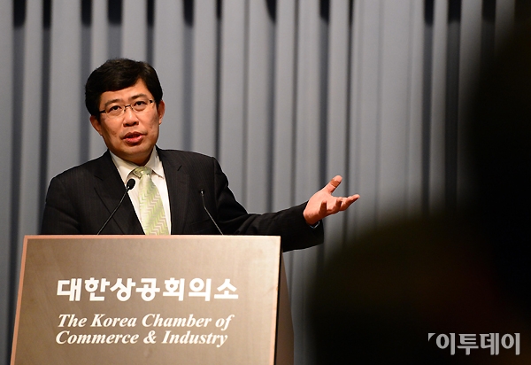 윤창현 한국금융연구원장이 8일 오전 남대문로 대한상공회의소에서 열린 조찬간담회에 참석해 ‘최근 금융시장 동향과 한국경제’를 주제로 강연하고 있다. 노진환 기자 myfixer@
