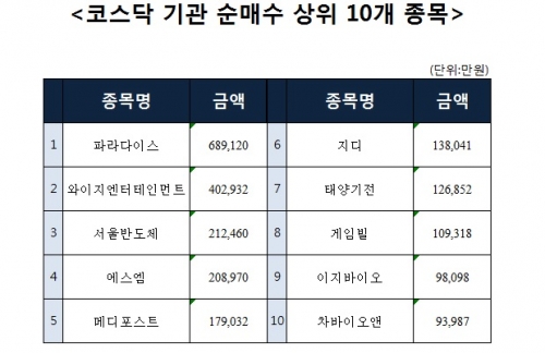 [코스닥 기관 순매수 상위 10개 종목]