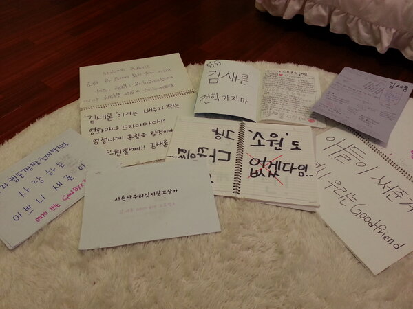 김새론은 최근 자신의 트위터에 “나의 사랑하는 미양초등학교 친구들이 전학갈 때 써준 편지들^^ 6년간 함께한 미양친구들의 추억을 다담진 못하겠지만 함께 웃고, 울고한 나의미양친구들. 우린 말하지 않아도 서로 하나의 마음인걸♥”이라는 글과 함께 사진 한 장을 공개했다.