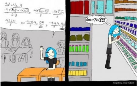 이 사진에는 어려운 수학 문제는 척척 풀던 여학생이 막상 쉬운 덧셈 문제에서는 멈칫하며 당황하는 모습이 그려졌다.