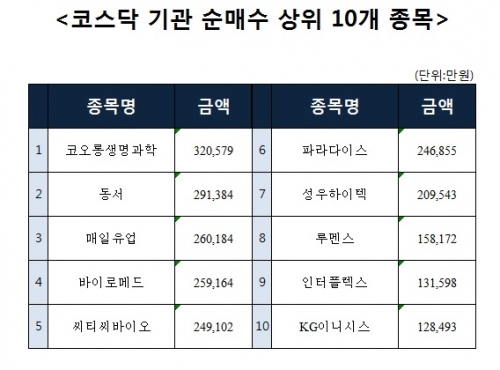[코스닥 기관 순매수 상위 10개 종목]