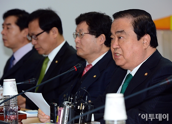 문희상 민주통합당 비상대책위원장이 13일 오전 민주통합당 영등포 중앙당사에서 열린 비상대책위원회의에 참석해 모두발언을 하고 있다. 노진환 기자 myfixer@