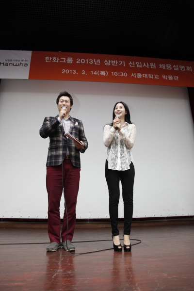 ▲배우 김태희가 14일 모교 서울대에서 열린 한화 채용설명회에 참석했다. (사진=한화)