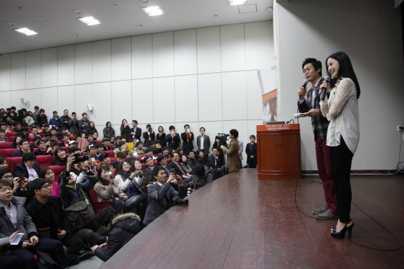 김태희는 “졸업하고 학교에 처음 왔는데 후배들을 보니 대학 시절 생각도 나고 무척 반갑다”며 한화 광고 촬영 뒷 이야기등을 나누는 시간을 가졌다.