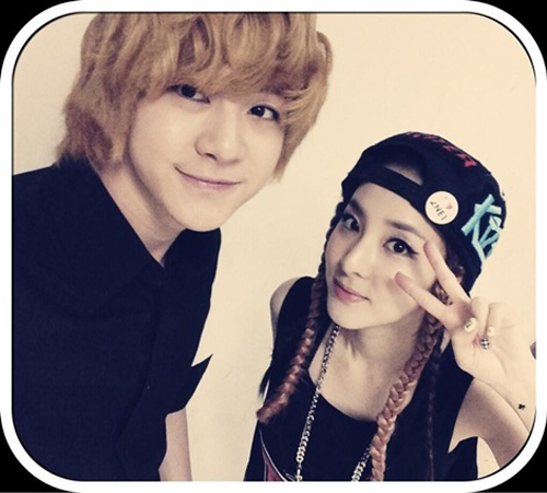 산다라박은 16일 자신의 트위터를 통해 "With my tall, cute and handsome little brother Thunder!(키 크고, 귀엽고 잘생긴 나의 동생 천둥과 함께)"라는 글과 함께 사진을 게재했다.