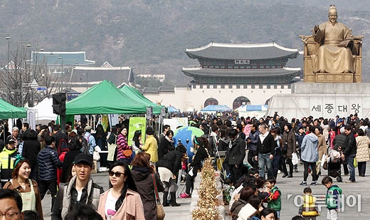 17일 서울 광화문광장에서 열린 시민이 참여하는 대규모 벼룩시장 '희망나눔장터'가 시민들로 붐비고 있다. 희망나눔장터는 서울시가 주관하고 시민들이 직접 참여해 꾸미는 이색장터로 오는 10월까지 매주 일요일마다 광화문광장에서 열린다. 방인권기자 bink7119@