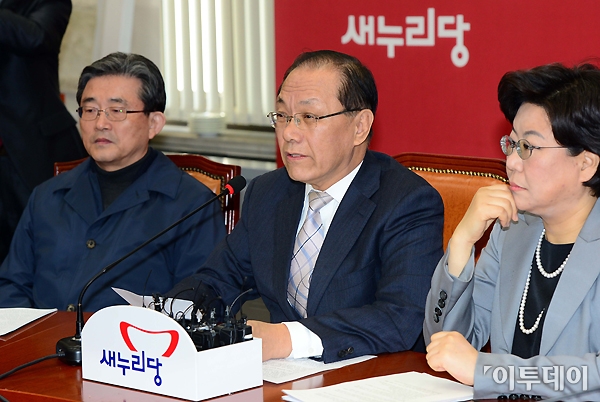 황우여 새누리당 대표가 18일 오전 국회 대표최고위원실에서 열린 최고위원회의에 참석해 모두발언을 하고 있다. 노진환 기자 myfixer@