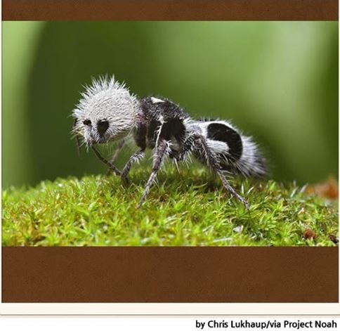 이 개미는 칠레 산티아고에서 포착된 것으로, 몸 색깔이 판다처럼 검정색과 흰색이다. 그러나 실제로는 개미가 아니라 날개 없는 말벌인 것으로 알려졌다.