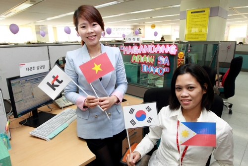 KT는 한국어가 서투른 다문화 가정 고객들을 위한 상담지원 센터 ‘투게더 콜센터’를 오픈했다고 20일 밝혔다.