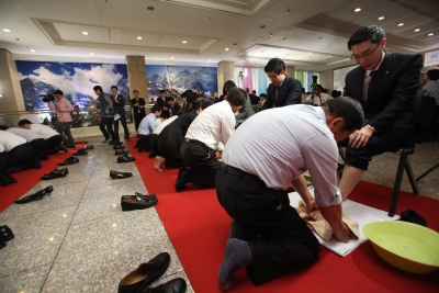 특히 이번 기념식에서는 임원들이 직원의 발을 부장급 직원들이 아내의 발을 닦아주며 서로에 대한 감사의 마음을 전달하는‘세족식’이 진행됐다.
