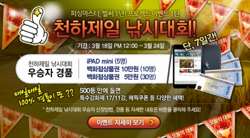 하루 2회씩 7일에 걸쳐 총 14회 진행되는 대회는 최고 승점자 45명에게 아이패드 미니, 백화점 상품권 등 푸짐한 상품을 제공하며 500위 내 입상자들에게도 특수 강화제, 에픽쿠폰 등 100% 아이템 경품 혜택이 주어진다.