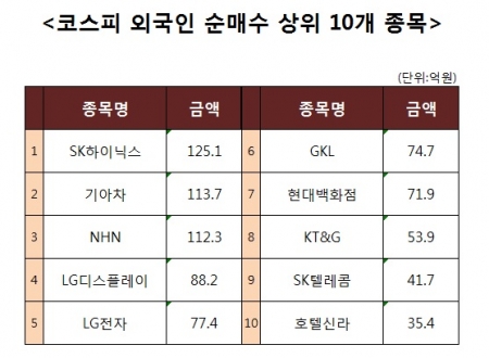 [코스피 외국인 순매수 상위 10개 종목]