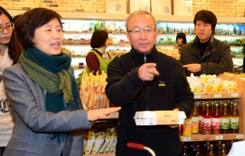 현오석 부총리 겸 기획재정부 장관이 23일 10시경 민생현장 방문의 일환으로 분당에 위치한 '한살림' 생활협동조합을 방문해 물건을 구매하고 있다.