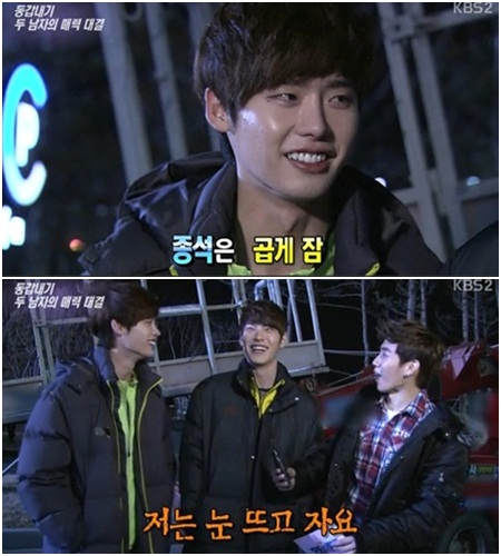 이날 방송에서 이종석과 김우빈은 술을 즐겨 마신다고 말했다. 이에 리포터는 주사에 대해 물었고, 이종석은 “곱게 자요. 입벌리고”라고 답했다. 이어 김우빈은 “저는 눈 뜨고 자요”라고 솔직하게 고백해 웃음을 자아냈다.
