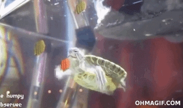 해당 동영상 속에는 어항에 살고 있는 거북이의 모습이 담겨 있다. 어항 유리 벽면에는 물고기 모양의 자그마한 스티커들이 몇 개 붙어 있고, 이에 거북이는 스티커를 향해 돌격하는 모습을 보인다.