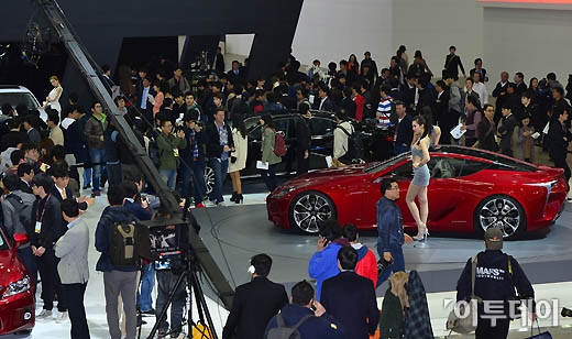 2013 서울모터쇼가 28일 경기 고양 킨텍스에서 프레스데이를 시작으로 화려한 막을 올렸다. 이날 행사장이 취재진과 업체 관계자들로 붐비고 있다. 올해로 9회째 맞는 이번 행사에는 13개국 331개 업체가 참가해 역대 최대 규모를 기록했다. 양지웅 기자 yangdoo@