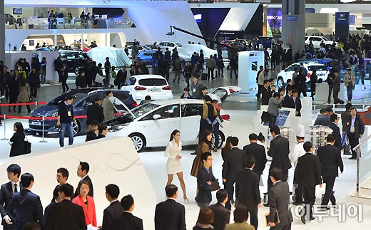 2013 서울모터쇼가 28일 경기 고양 킨텍스에서 프레스데이를 시작으로 화려한 막을 올렸다. 이날 행사장이 취재진과 업체 관계자들로 붐비고 있다. 올해로 9회째 맞는 이번 행사에는 13개국 331개 업체가 참가해 역대 최대 규모를 기록했다. 양지웅 기자 yangdoo@