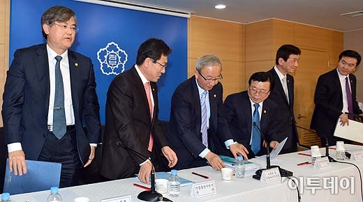 [포토]합동브리핑 마친 현오석 부총리 및 경게 부처 장관들