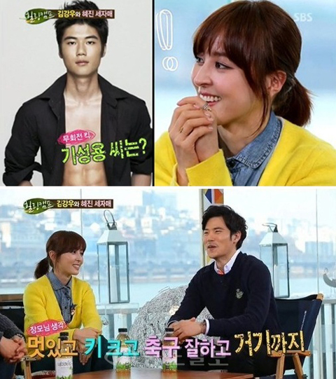 이날 김강우는 “장모님이 좋아하는 사윗감이 있다”고 말해 눈길을 끌었다. MC 이경규가 “기성용을 보고는 뭐라고 했느냐”고 묻자 김강우는 “멋있고 키도 크고 축구도 잘하고...거기까지”라고 밝혔다.