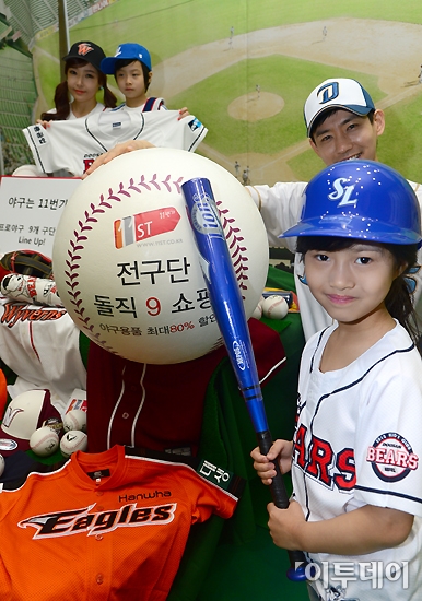 오프마켓 11번가가 2013년 프로야구 개막을 기념해 ‘돌직9쇼핑 베이스볼’ 프로모션을 진행한다. 31일 오전 서울 을지로 SK텔레콤 T타워에서 어린이와 모델들이 프로야구 9개 구단 상품과 야구 용품을 최대 80% 저렴하게 판매하는 행사를 알리고 있다. 노진환 기자 myfixer@