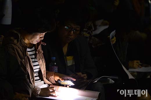 성균관대학교가 서울시 소재 주요 대학 중 처음으로 ‘2014년 단독 입시설명회’를 7일 오전 서울 송파구 잠실학생체육관에서 열었다. 이날 설명회에 참석한 학부모들이 입시자료를 보고 있다. 방인권 기자 bink7119@