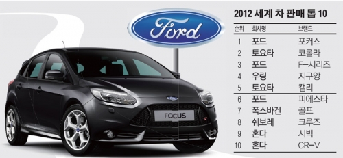 포드는 포커스를 비롯해 F-시리즈 트럭과 소형차 피에스타 등 3종이 세계 판매 ‘톱10’에 오르는 영예를 안았다.