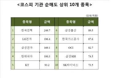 [코스피 기관 순매도 상위 10개 종목]