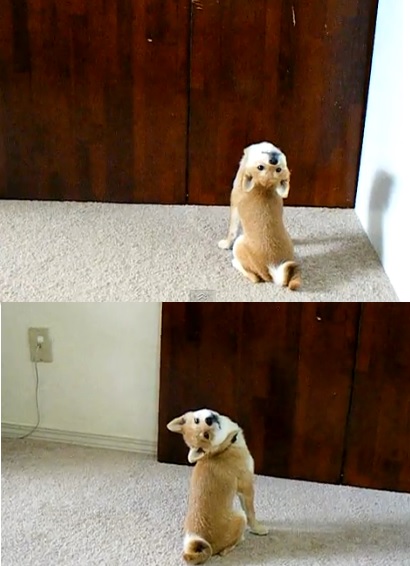 이 영상 속에서 한 마리 개가 주인이 불러도 다가가지 않고 성의 없이 쳐다보기만 할 뿐이다. 특이한 점은 매우 유연함을 자랑하면서 주인을 본다는 것.