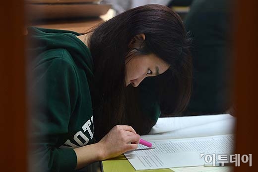 ‘2013학년도 4월 고3 전국연합학력평가’가 치러진 11일 오전 서울 종로구 배화여자고등학교에서 수험생들이 시험을 치르고 있다. 방인권 기자 bink7119@