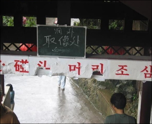 공개된 사진 속에는 '머리조심'이라는 경고문이 쓰여있다. 문제는 이 경고문 곳곳에 머리를 부딪힌 흔적이 보인다는 것.