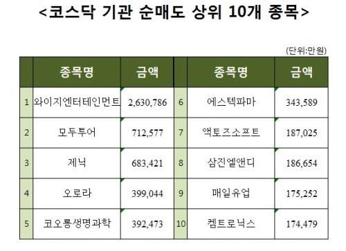 [코스닥 기관 순매도 상위 10개 종목]