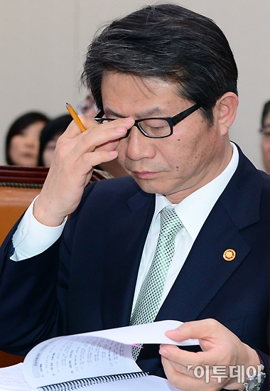 류길재 통일부 장관이 17일 오전 국회 외교통일위원회 전체회의에서 법안 자료를 검토하고 있다. 노진환 기자 myfixer@