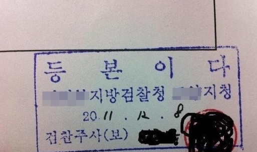 한 페이스북 사용자가 자신의 페이스북에 올린 이 게시물에는 "보통 타 기관으로 서류 등본을 보낼 때에는 '등본임' 또는 '등본입니다'라고 하지만, 검찰청에서는 이렇게 쓰나보네요"라는 설명이 덧붙여져 있다.