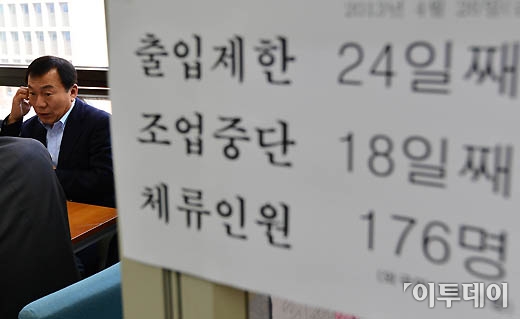 우리 정부가 북한에 개성공단 실무 회담을 제의하고 "거부하면 중대조치가 있을 것"이라고 밝힌 26일 서울 무교동 개성공단기업협회에서 한재권 협회장이 심각한 표정을 짓고 있다. 양지웅 기자 yangdoo@