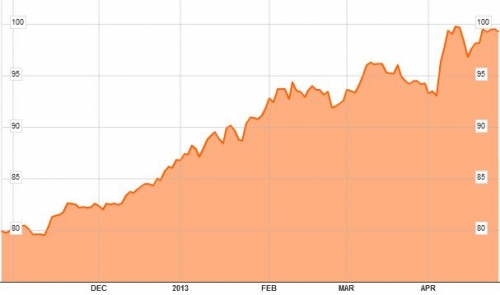 BOJ는 26일(현지시간) 정례 통화정책회의를 마치고 경제 및 물가 전망 반기 보고서를 발표했다. 보고서는 2013회계연도 근원 소비자물가지수(CPI) 상승률 전망치를 0.7%로 기존보다 0.3%포인트 상향 조정했다.