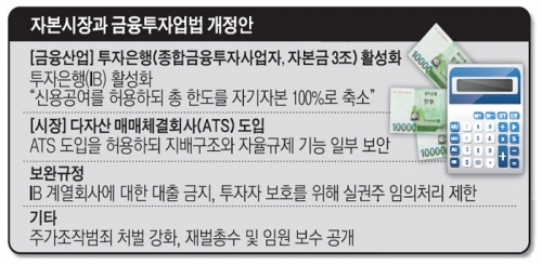 개정안의 통과로 자기자본 3조원 이상의 증권사들은 IB 업무가 가능해진다. 현재 자기자본 3조원 이상의 증권사는 KDB대우증권, 삼성증권, 우리투자증권, 한국투자증권, 현대증권 등 5개이다.