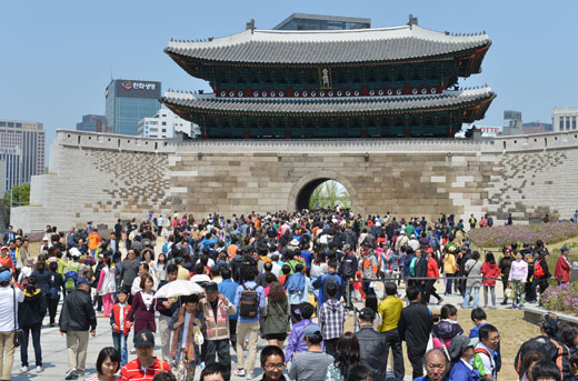 국민의 품으로 돌아온 숭례문이 5일 휴일을 맞아 구경 나온 시민들로 북적이고 있다. 지난 2008년 방화로 훼손된 숭례문은 5년 3개월 만에 복구돼 4일 일반인들에게 공개됐다.