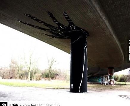 공개된 사진은 어느 고가도로를 받치고 있는 콘크리트 구조물을 찍은 것으로 콘크리트받침 구조물에 거대한 손 모양을 그려져 있다. 이는 공공미술의 일종인 것으로 보이며 검은색 커다란 손이 온 힘을 다해서 다리를 떠받치고 있는 느낌을 주고 있다.